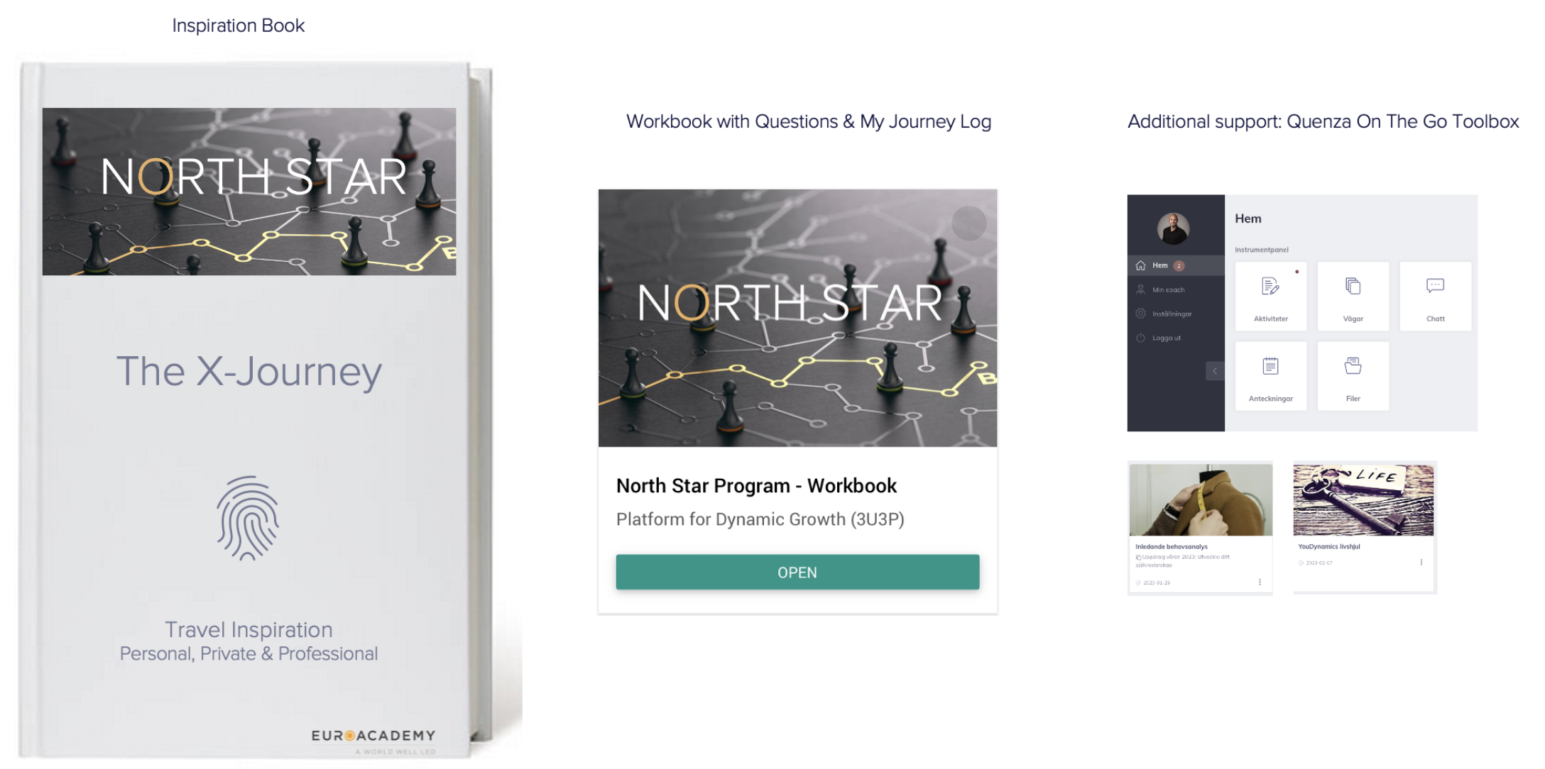 The Digital Workbook is your primary tool throughout the North Star Journey. It contains both inspiration and personal reflections. Everything you write in the workbook is collected in your personal journal, My Journey Log, which becomes a valuable record of your journey over time.